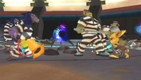 Όσο πιο πετυχημένος είναι ο Clank, τόσο πιο εύκολα αποφεύγει τους αντιπάλους και τις δεσμίδες λέιζερ. Το "μυστικό της επιτυχίας" σε αυτή την πίστα, είναι να καταφέρει ο παίκτης να παραμείνει πιστός στον ρυθμό στα πρώτα εύκολα στάδια της μουσικής, χωρίς να χάσει καθόλου υγεία, αφού τα τελευταία στάδια είναι πολύ δύσκολα. Μπορεί το παιχνίδι να μην είναι απαιτητικό σε αυτό το στάδιο, φροντίζει όμως να σπάει την μονοτονία. Οι εκπλήξεις, όμως, δεν σταματάνε εδώ. Καθώς συνεχίζουμε την περιπέτεια, φτάνουμε σε μια πίστα-φυλακή όπου και αναλαμβάνουμε τον έλεγχο του Ratchet. Εδώ το παιχνίδι μετατρέπεται ξαφνικά σε έναν φρενήρη τίτλο δράσης, αφού ο παίκτης βρίσκεται σε μια κλειστή πίστα, στην οποία μπαίνουν από παντού οι άλλοι φυλακισμένοι και τους οποίους πρέπει να αντιμετωπίσει με τα διασκορπισμένα όπλα που βρίσκει. Εδώ πρέπει να κινούμαστε συνέχεια και να αλλάζουμε κατά περίπτωση οπλισμό για να μπορέσουμε να επιβιώσουμει.