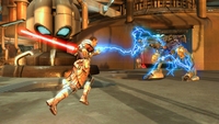 Το πρόβλημα είναι ότι η Force Shield διαρκεί απελπιστικά λίγο και κοστίζει τόσο πολύ, που στην ουσία σπάνια θα τη χρησιμοποιήσετε. Από την άλλη, η Force Lightning είναι σίγουρα η πιο χρήσιμη ικανότητα όλων. Όπως γίνεται εύκολα αντιληπτό και από το όνομά της, αυτή η κίνηση δίνει τη δυνατότητα να εξαπολύουμε ηλεκτρισμό προς τους αντιπάλους. Το θετικό είναι ότι η Force Lightning και μεγάλη ζημιά προκαλεί, αλλά και ακινητοποιεί όλους τους αντιπάλους, επιτρέποντάς μας στη συνέχεια να εξαπολύουμε ένα θανατηφόρο Lightsaber combo.