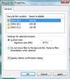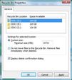 Τα Windows δεσμεύουν το 10% του χώρου του σκληρού δίσκου για να αποθηκεύουν όσα αρχεία πετάμε στον κάδο ανακύκλωσης ή Recycle Bin. Σε περιπτωση που δεν υπάρχει αρκετός χώρος στον σκληρό δίσκο και δεν θέλουμε να δεσμεύουμε τόσο πολύ χώρο για τα υπό διαγραφή αρχεία, μπορούμε να κάνουμε το εξής: Κάνοντας δεξί κλικ στο Recycle Bin, επιλέγουμε "properties" και μετά την καρτέλα "global". Ο δείκτης μπορεί να μετακινηθεί για να μειώσει κατ’ επιθυμία του χρήστη το ποσοστό του χώρου του σκληρού που θα διατηρεί τα υποψήφια προς διαγραφή αρχεία.