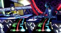Οι νότες έρχονται από το επάνω μέρος της οθόνης, και υπάρχουν οπτικά cues για τα σημεία που μπορούμε να εισάγουμε εφέ και samples -περίπου με τον ίδιο τρόπο που χρησιμοποιούμε τη whammy bar στο Guitar Hero. Ειδικά τμήματα του διαδρόμου, μας ειδοποιούν επίσης για τα σημεία που μπορούμε να κάνουμε scratches –είτε freestyle, όπου το μόνο που έχουμε να κάνουμε είναι να “σκρατσάρουμε” κινώντας το δίσκο πάνω-κάτω, είτε ακολουθώντας τους δείκτες-βέλη που εμφανίζονται στην οθόνη και μας υποδεικνύουν την κατεύθυνση του scratch.