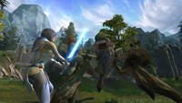Ιδιαίτερη εντύπωση μας έκανε το γεγονός ότι σε τέτοιου είδους διαλόγους μπορεί να συμμετέχει και δεύτερος παίκτης που βρίσκεται εκείνη την ώρα στο party και να συνεισφέρει με τις δικές επιλογές στη στιχομυθία – συνήθως κατά τη διάρκεια flashpoints, δηλαδή σημείων όπου η δράση οδηγεί σε cut-scene που είναι σημαντικό για τη συνέχιση της ιστορίας. Αμέσως μετά μεταφερθήκαμε στον Ord Mantell για να παρακολουθήσουμε το ξεκίνημα του Smuggler. Ως μια κλάση που έχει για πρότυπο τον ανεπανάληπτο Han Solo, ο Smuggler έχει ένα δικό του, χαρακτηριστικό σύστημα μάχης. Όπως λένε οι developers, “ο Han Solo συνήθως τρέχει να ξεφύγει από μπελάδες, πυροβολώντας πίσω από την πλάτη του”!