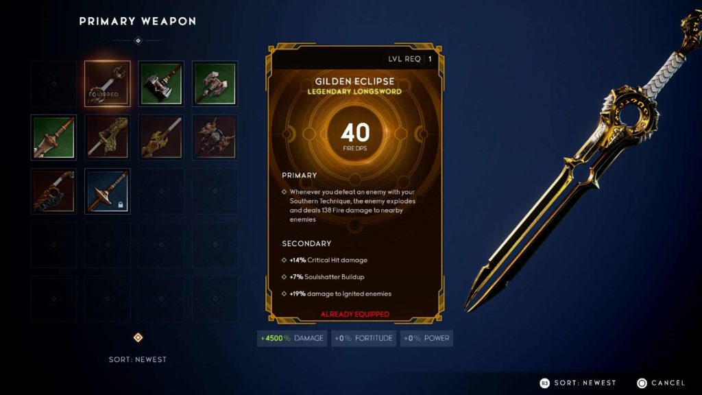 Ως looter τίτλος, θα μπορούσε εύκολα να θεωρήσει κανείς ότι το loot είναι το επίκεντρο της εμπειρίας στο Godfall, όμως είναι τόσο άφθονο, που καταλήγει ανούσιο, σε σημείο που πλέον δεν μπαίναμε καν στον κόπο να ανοίγουμε όποιο σεντούκι βρίσκαμε στην πορεία μας. Όλη αυτή η αφθονία μάς οδηγεί στο να μην έχουμε κάποιο αγαπημένο όπλο ή εξοπλισμό που να θέλουμε να κρατήσουμε ή να αναβαθμίσουμε.