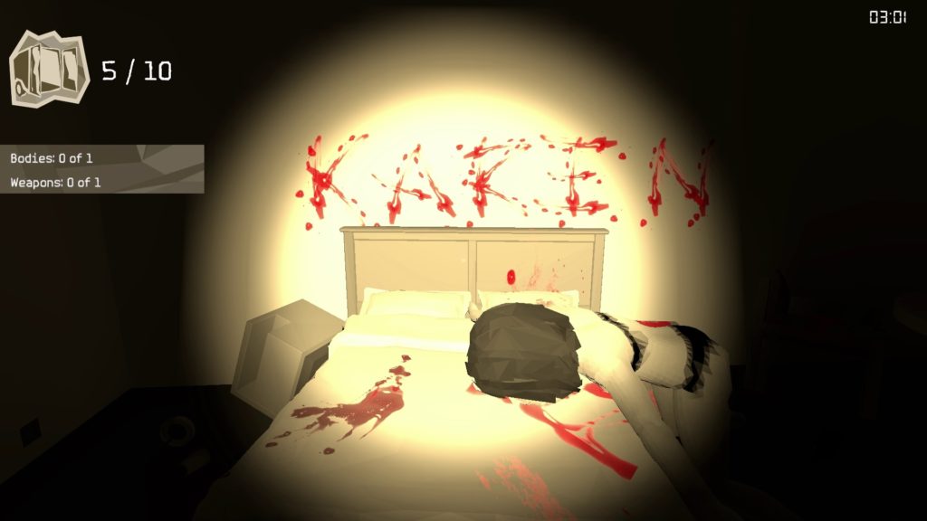 Οπτικά οι δημιουργοί επέλεξαν μια μινιμαλιστική προσέγγιση. Η οπτική είναι πρώτου προσώπου, ενώ τα περιβάλλοντα είναι μονοχρωματικά (για να κάνουν αντίθεση με το κόκκινο αίμα που θα χρειαστεί να καθαρίσουμε) και με μικρή λεπτομέρεια. Μην περιμένετε να δείτε υψηλές αναλύσεις και λεπτομερή facial models εδώ. Σίγουρα τα γραφικά σχεδιάστηκαν έτσι από επιλογή και ταιριάζουν σε indie τίτλο, αλλά από το μυαλό μας πέρασαν και σκέψεις ότι ίσως το budget και οι ικανότητες των σχεδιαστών να έπαιξαν το ρόλο τους.