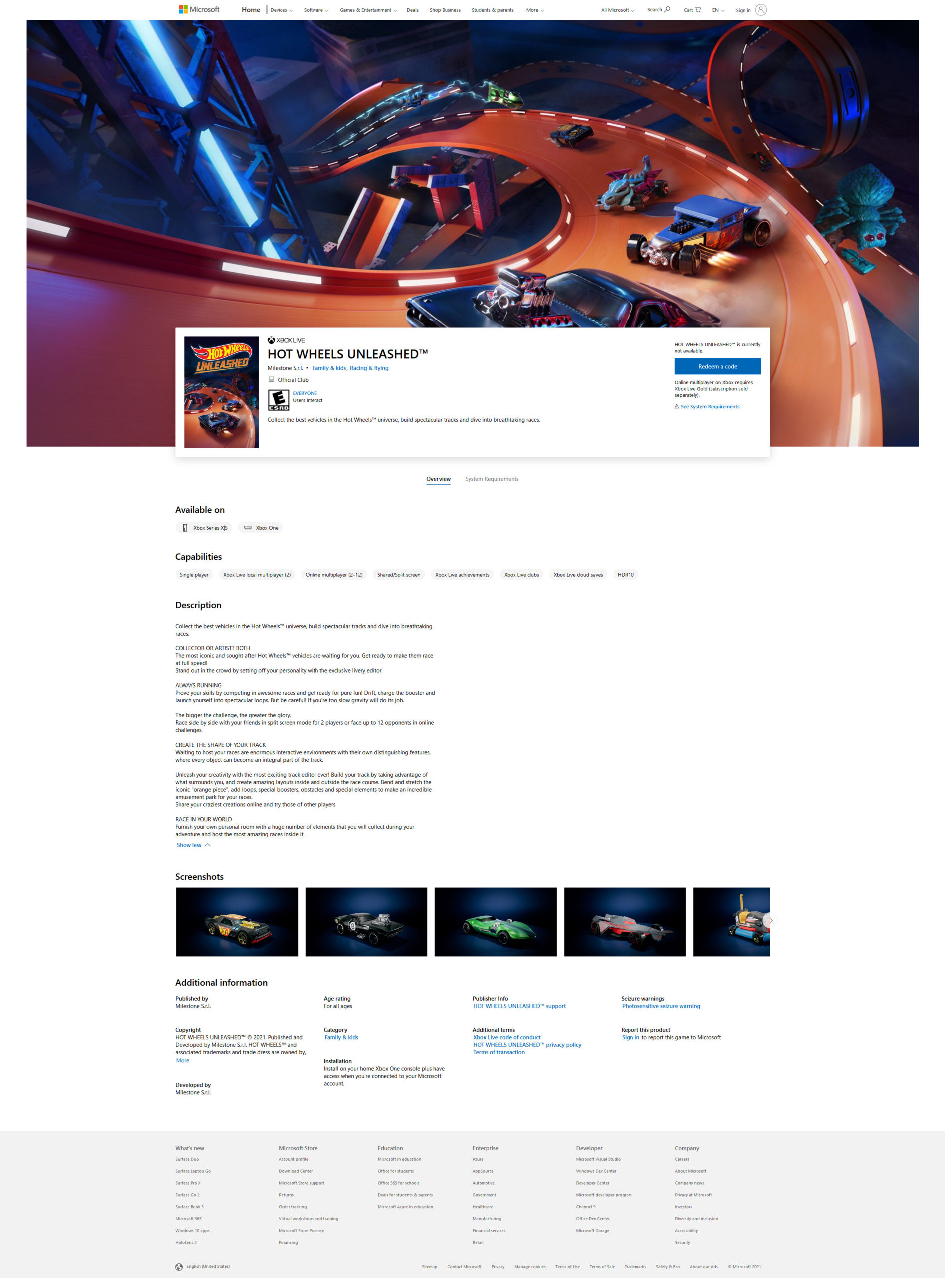 Μετά την προσθήκη των νέων Hot Wheels που αναμένονται να γίνουν διαθέσιμα σύντομα στο Forza Horizon 4, φαίνεται ότι η δημοφιλής μάρκα παιχνιδιών πρόκειται να αποκτήσει ένα δικό της παιχνίδι αργότερα μέσα στη χρονιά, καθώς πριν από μια ημέρα είχαμε μια ανάρτηση – διαρροή του Hot Wheels Unleashed της Milestone στο Microsoft Store.