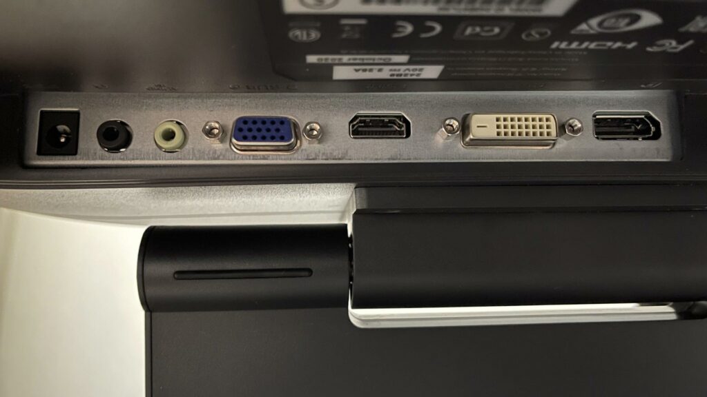Στην κάτω δεξιά μεριά υπάρχουν τα κουμπιά πλοήγησης του μενού, και στο πίσω μέρος βρίσκουμε τις εξής θύρες: μία VGA, μια DVI-D, ένα DisplayPort 1.2, ένα HDMI 1.4, δύο USB 3.1, ένα USB upstream, μία είσοδο και μία έξοδο ήχου 3.5 mm, ενώ η οθόνη διαθέτει και δύο ηχεία των 2 Watts.