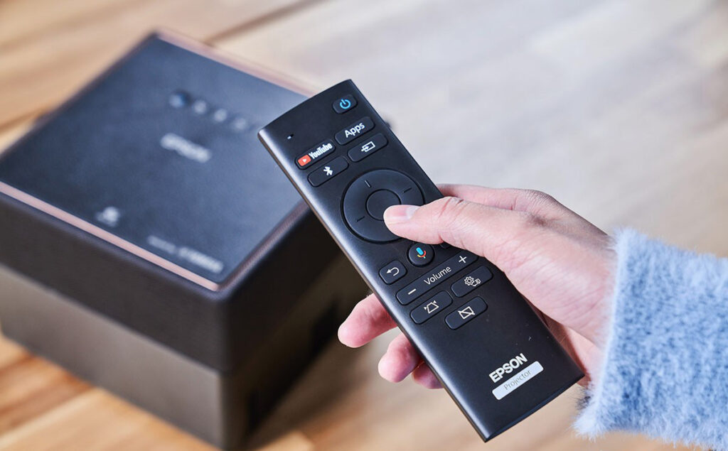 Βέβαια, γνωρίζουμε ότι μέχρι πριν από λίγους μήνες δεν υποστηριζόταν ούτε η εφαρμογή του Amazon Prime, κάτι που διευθετήθηκε μετά από ένα update, οπότε έχουμε ελπίδες ότι σύντομα θα λυθεί και το πρόβλημα του Netflix. Επίσης, αυτό το σημαντικό μειονέκτημα μπορεί να παρακαμφθεί μέσω casting περιεχομένου από οποιαδήποτε κινητή συσκευή προς τον προβολέα. Πριν περάσουμε στις εντυπώσεις μας από τα πιο βασικά στοιχεία του EPSON EF-12, αξίζει να αναφέρουμε την ύπαρξη ενός απλοϊκού, εύχρηστου και μικρού τηλεχειριστηρίου, που συνδέεται μέσω bluetooth και δεν μας δημιούργησε κανένα πρόβλημα κατά τη χρήση.