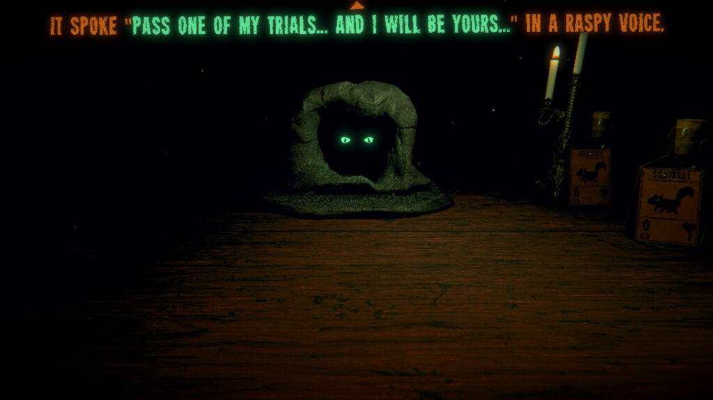Ήδη από τα μενού του παιχνιδιού φαίνεται ότι κάτι εναλλακτικό υπάρχει γύρω από το στήσιμό του, καθώς κατά περίεργο τρόπο μόνο η επιλογή του Continue Game είναι διαθέσιμη με αυτήν του New Game να είναι γκριζαρισμένη. Ευθύς αμέσως μεταφερόμαστε στη μία πλευρά ενός ξύλινου τραπεζιού, όπου απέναντι βρίσκεται μία μυστηριώδης φιγούρα, της οποίας μόνο τα μάτια μπορούμε να διακρίνουμε.