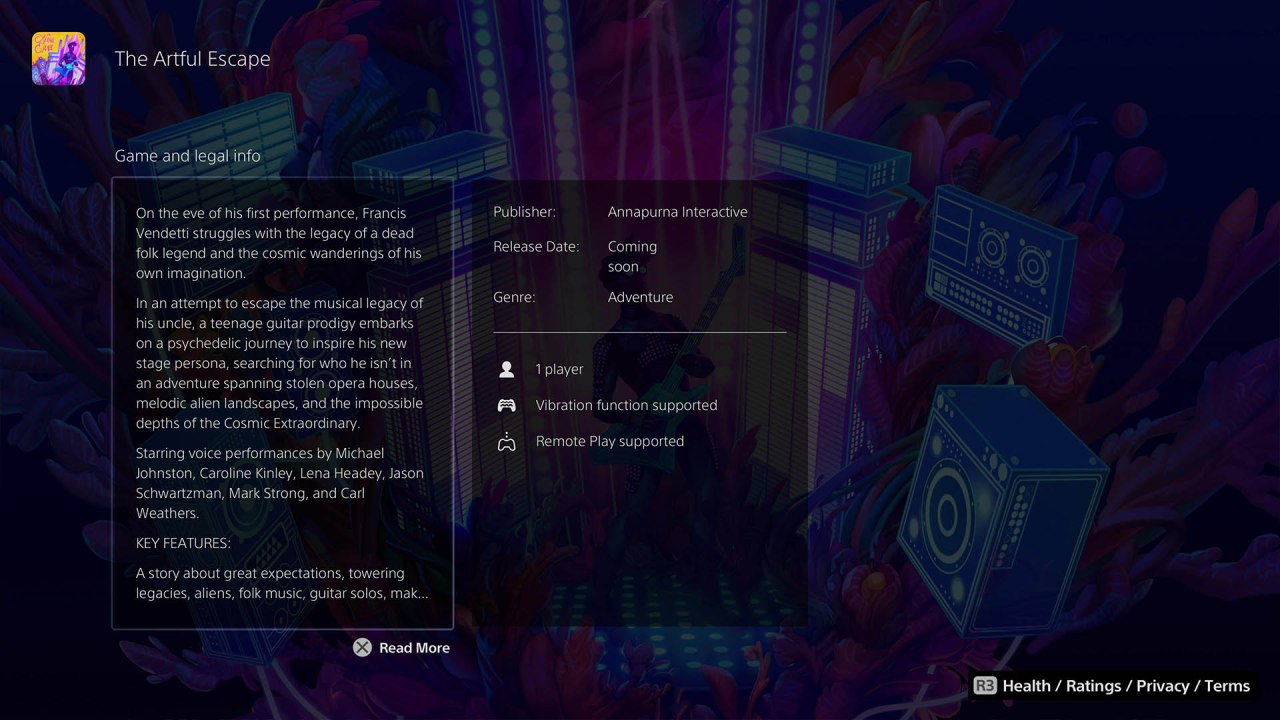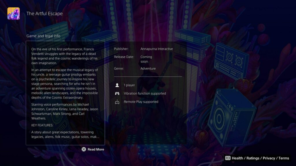 Το The Artful Escape, ένας από τους περσινούς indie τίτλους με πολλές θετικές κριτικές, εμφανίστηκε στο PlayStation Store πριν από την επίσημη ανακοίνωση της διάθεσής του στις κονσόλες της Sony.