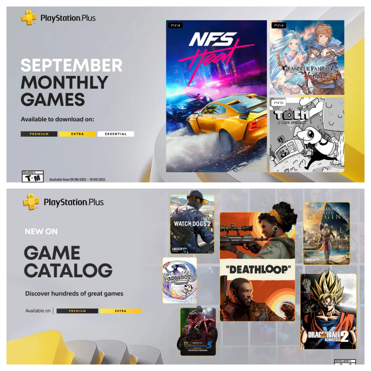 Η Sony έκανε γνωστούς τους τίτλους που πρόκειται να διαθέσει μέσα από την υπηρεσία του ανανεωμένου PlayStation Plus για τον επόμενο μήνα. Έτσι, όλοι οι συνδρομητές της υπηρεσίας, ανεξαρτήτως βαθμίδας συνδρομής στην οποία ανήκουν, είτε είναι στο Essential είτε στο Extra, είτε στο Premium, θα μπορούν να κατεβάσουν τα: Need for Speed Heat, Granblue Fantasy: Versus και Toem, τα οποία θα είναι προσβάσιμα από τις 6 Σεπτεμβρίου (μέχρι τις 3 Οκτωβρίου).