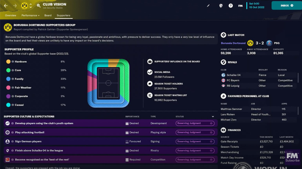 Ένα από τα νέα χαρακτηριστικά είναι η προσθήκη του Supporter Confidence. Η εμπιστοσύνη των οπαδών της ομάδας είναι δυναμική και εξαρτάται από την ομάδα που διαχειρίζεστε. Παρέχει ποσοστά του διαχωρισμού της βάσης θαυμαστών, από σκληροπυρηνικό έως περιστασιακό κ.α. Το στοιχείο της εμπιστοσύνης των οπαδών μπορεί να παίξει ρόλο στο εάν ένας προπονητής θα χάσει ή να διατηρήσει τη δουλειά του.