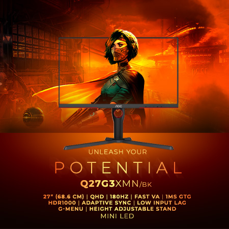 Η AGON by AOC ανακοινώσε την κυκλοφορία της AOC GAMING Q27G3XMN/BK, μιας οθόνης εξοπλισμένης με ένα πάνελ 27″ Fast VA που αιχμαλωτίζει με την απόδοσή του, προσφέροντας εντυπωσιακή ανάλυση QHD (2560×1440) και οπίσθιο φωτισμό MiniLED που υποστηρίζει 336 ζώνες dimming.