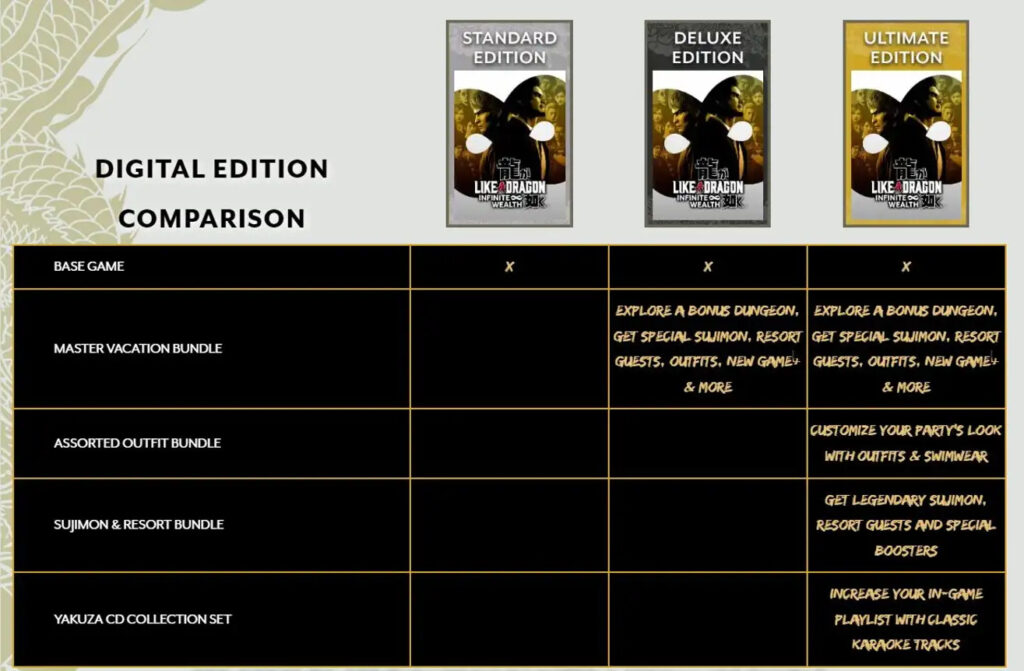 Το New Game+ περιλαμβάνεται στο Master Vacation Bundle, το οποίο προσθέτει επίσης ένα bonus dungeon, ένα special Sujimon για στρατολόγηση στις τάξεις μας, bonus resorts quests στο νησί Dondoko και επιπλέον ρούχα. Αναλυτικά, τα περιεχόμενα του κάθε bundle, μπορείτε να τα δείτε στην παρακάτω εικόνα που συγκρίνει τις digital εκδόσεις του τίτλου.