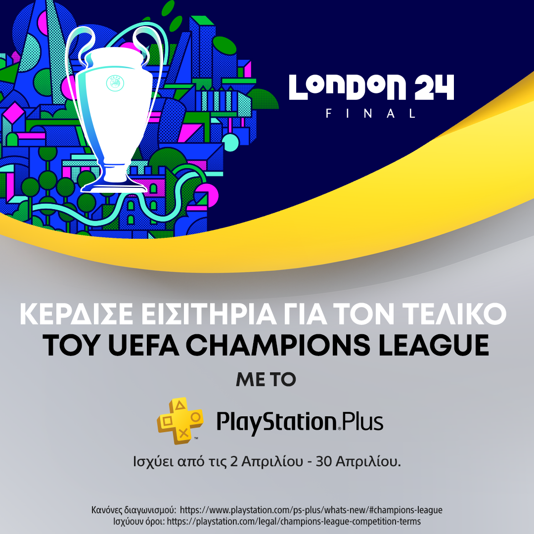 O τελικός του UEFA Champions League 2023/24 επιστρέφει στο εμβληματικό στάδιο Wembley του Λονδίνου. Θα μπορούσατε να καθίσετε ανάμεσα στους χιλιάδες ενθουσιασμένους οπαδούς που θα παρακολουθήσουν την κορυφαία στιγμή των συλλογικών διοργανώσεων ποδοσφαίρου με τον ανεπανάληπτο διαγωνισμό μας – αποκλειστικά για τα μέλη του PlayStation Plus*!