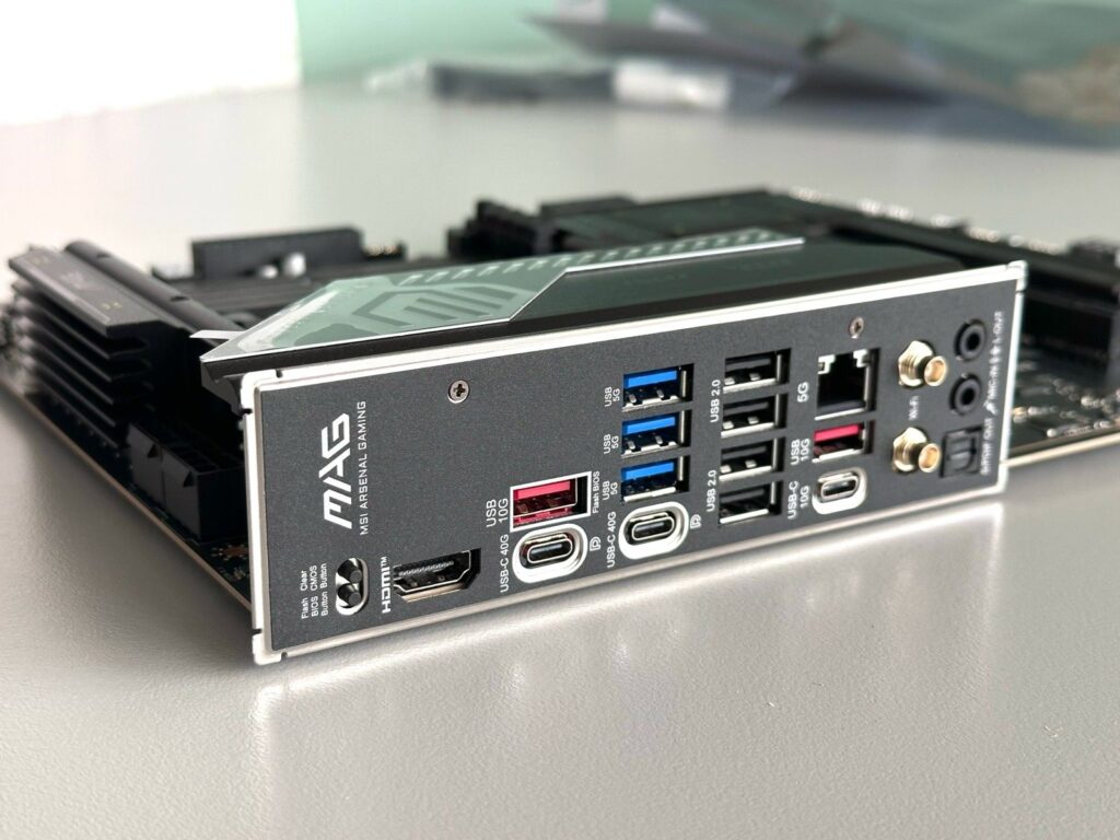 Η συνδεσιμότητα αποτελεί ένα από τα δυνατά σημεία της εν λόγω μητρικής. Στο rear I/O περιλαμβάνονται USB4 40Gbps, θύρες USB 3.2 Gen2 και Gen1, καθώς και USB 2.0, προσφέροντας ευελιξία για κάθε είδους περιφερειακά. Η δικτύωση καλύπτεται από 5GbE LAN και Wi-Fi 7, εξασφαλίζοντας εξαιρετικές ταχύτητες τόσο σε ενσύρματες όσο και σε ασύρματες συνδέσεις. Στον ήχο, η παρουσία οπτικής εξόδου S/PDIF συμπληρώνει τα βασικά 3.5mm audio jacks, καλύπτοντας χρήστες με εξωτερικά ηχοσυστήματα.
