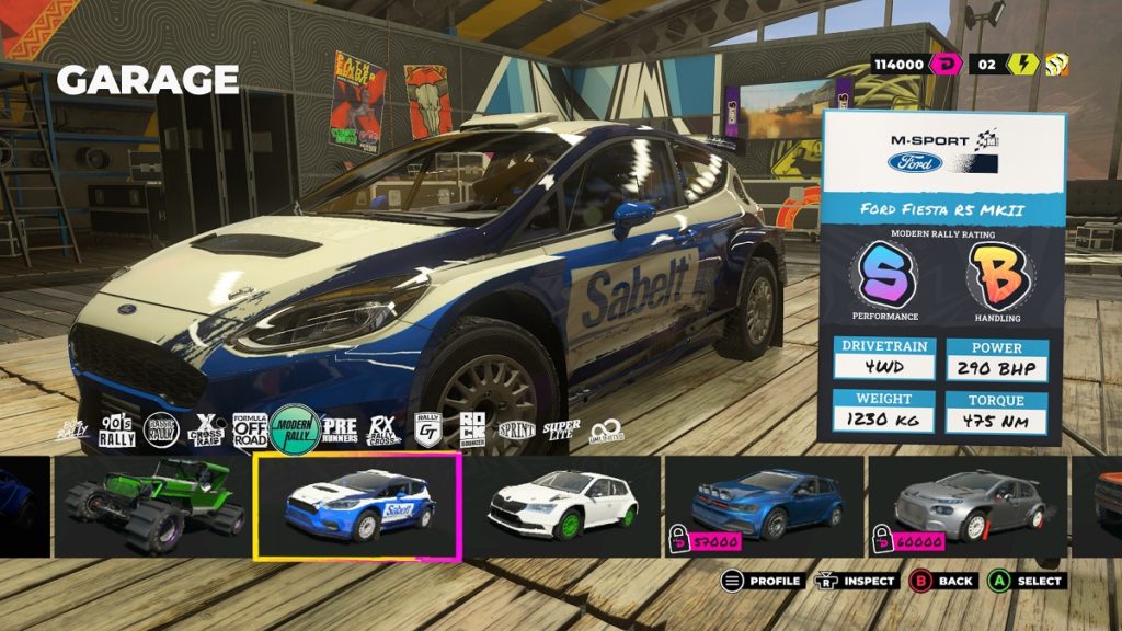 Ένας τομέας που τα πάει περίφημα ο νέος τίτλος της Codemasters, είναι αυτός της πληθώρας των διαθέσιμων οχημάτων. Μπορεί τα -περίπου- 60 οχήματα να μην εντυπωσιάζουν σαν στυγνός αριθμός, ωστόσο τα περισσότερα είναι προσεκτικά επιλεγμένα και καλύπτουν ένα μεγάλο φάσμα της ιστορίας των Ράλι. Ο παίκτης έχει μπροστά του ένα ψηφιακό γκαράζ με ιστορικά οχήματα των 80s και 90s, μέχρι και πιο σύγχρονες προτάσεις όπως το Ford Fiesta R5 MK.II, αυτοκίνητα για rally cross και off-road trucks. Ανάμεσα στα παραπάνω δεν λείπουν και «ιδιαίτερες» προτάσεις, όπως κάποια εξωτικά πρότυπα. Δυστυχώς, τα απλοϊκά physics του τίτλου δεν καταφέρνουν να μεταφράσουν τις διαφορές στη συμπεριφορά των οχημάτων, οι οποίες περιορίζονται σε διαφορές ανάλογα με την κατηγορία και το «Handling Score».