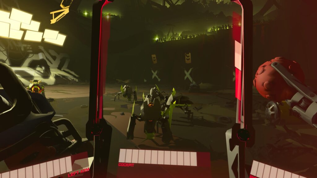 Με τα τεράστια mech χέρια χτυπάμε τους αντιπάλους μας, με τις κινήσεις μας να καταγράφονται 1 προς 1 από τα controllers του PlayStation VR2. Σε συνδυασμό με την physics engine, είμαστε σε θέση να κάνουμε την αντίστοιχη ζημιά στους εχθρούς μας με όποιον συνδυασμό χτυπημάτων μπορούμε να φανταστούμε.
